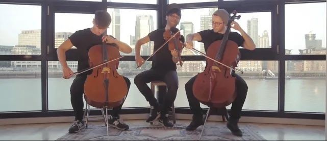 来自英国伦敦的乐团Ember Trio演奏Sia的《Cheap Thrills》,小提琴与大提琴的一场完美邂逅,另外辅之以敲打琴身制造鼓点般的节奏,很是带感,这些声音碰撞在一起优美而绵长,成就了一场听觉的盛宴!