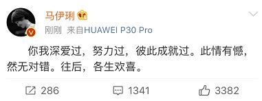 随后,马伊琍微博回应:你我深爱过,努力过,彼此成就过。此情有憾,然无对错。往后,各生欢喜。
