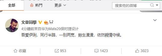 7月28日14点53分,文章发微博宣布与马伊琍离婚:吾爱伊琍,同行半路,一别两宽,余生漫漫,依然亲情守候。