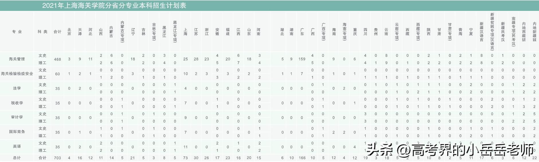 4、为什么录取分数超过一部分211?两个原因,一个是的确这个学校考公进编比例相当之高,考生家长的关注度高,另一个就是学校本身招生计划较少,海关专业总招生计划接近600人左右,每年在各省份提前批投放招生计划少,以2021年在招生计划为例,见下图↓