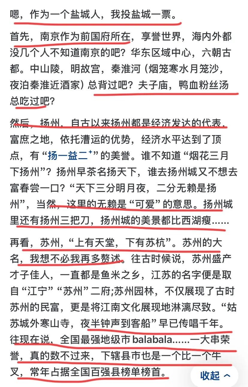 补充一些,国家美术馆馆长吴为山是盐城东台人,明星朱亚文杨超越盐城的,麋鹿丹顶鹤保护区,西瓜之乡东台8424爆炸瓜特小凤等,亚洲最大的沿海湿地东台条子泥等等