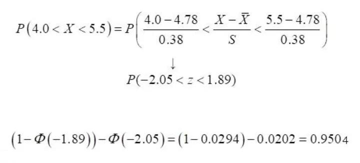 (2)分别计算X1=4.0和X2=5.5所对应的z值
