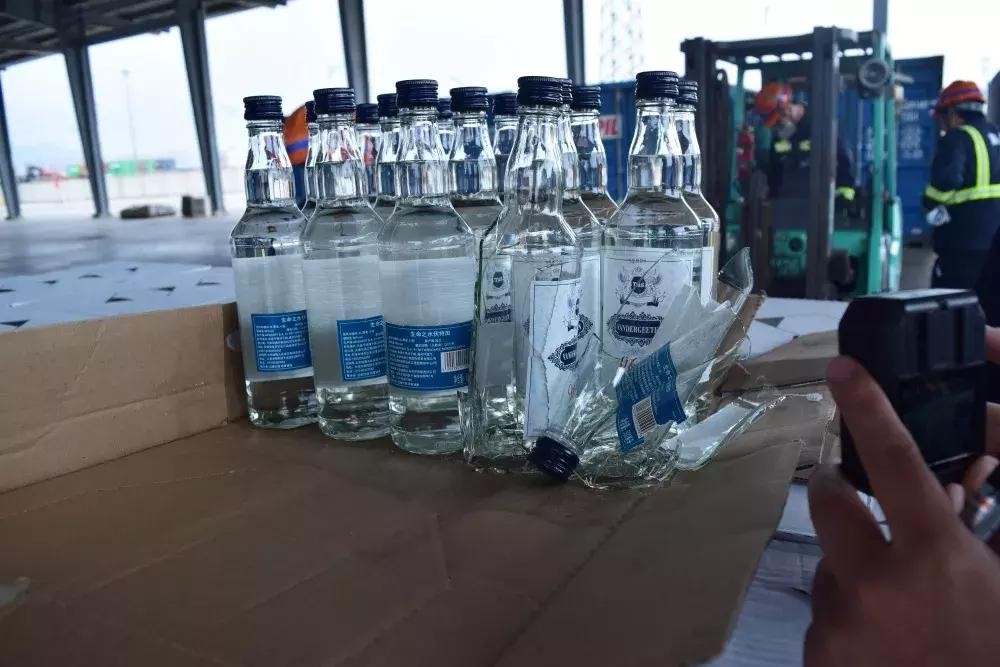 现场开箱检查时还发现,由于没按要求进行包装,瓶装伏特加在运输过程中存在破损情况,漏液在夏季高温下危险性大大提高,如果在存放的危险品货场发生燃烧,后果不堪设想。