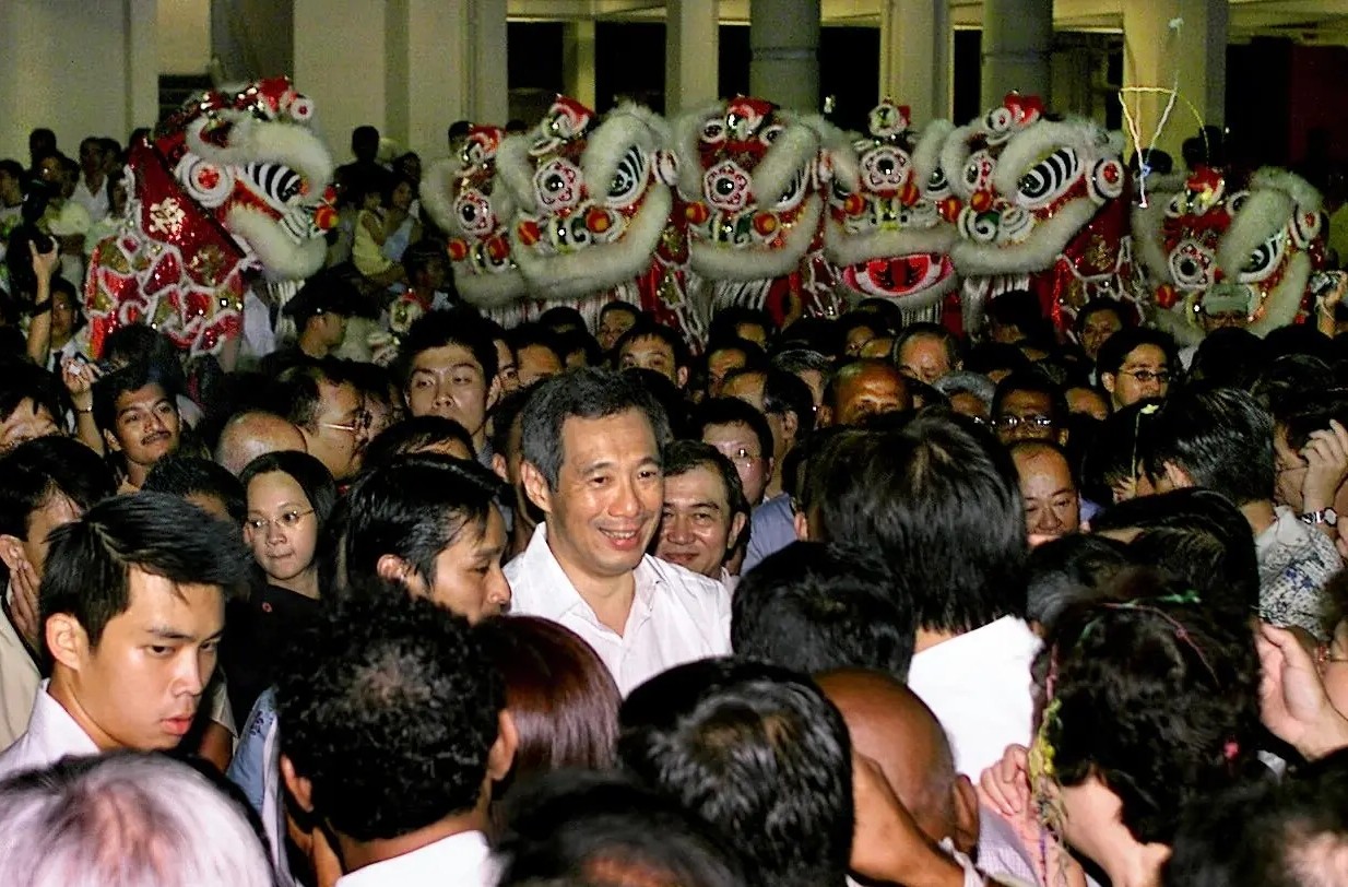 被民众簇拥的李显龙