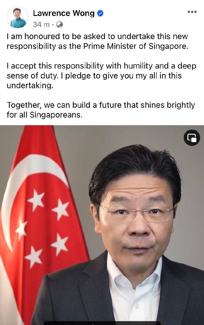 2024年4月15日下午,新加坡总理公署发布声明表示,现任总理李显龙将在5月15日正式卸下职务。