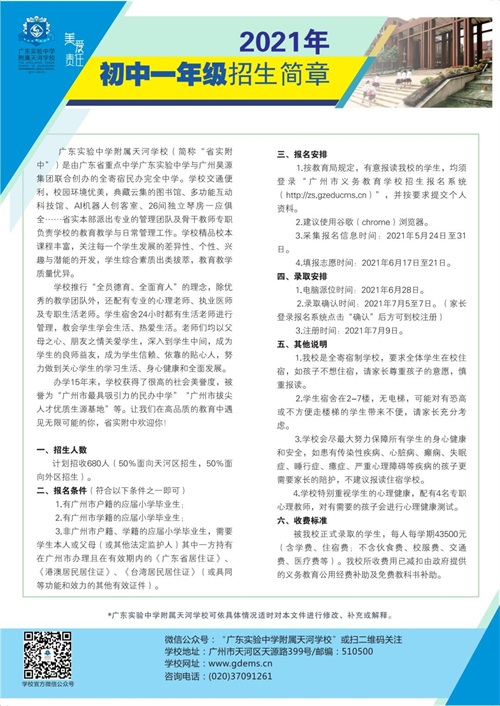 计划招收680人(50%面向天河区招生,50%面向外区招生)