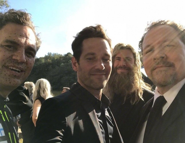1905电影网讯近日,哈皮的扮演者乔恩·费儒和罗素兄弟在社交网站上公开了《复仇者联盟4:终局之战》中众人参加钢铁侠葬礼的片场照。在乔恩·费儒公开的照片中,他分别与“星爵”、“绿巨人”、“蚁人”、“雷神”合影,当天阳光明媚,看起来大家心情都不错。在罗素兄弟公开的大合影中,参加影片结尾葬礼的诸多演员都出现了,“黑寡妇”和“钢铁侠”缺席。据部分演员透露,在拍摄时并不知道剧情,还以为是参加某人的婚礼。