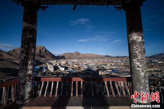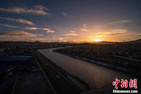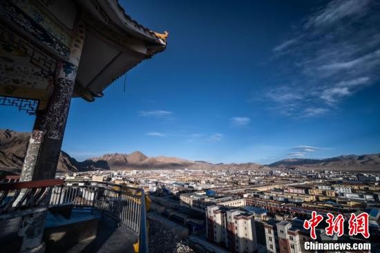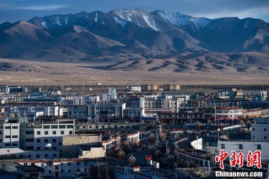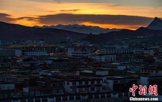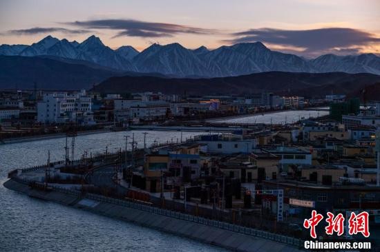 夕阳下的西藏阿里地区噶尔县狮泉河镇景象。(中新社记者 何蓬磊 摄)