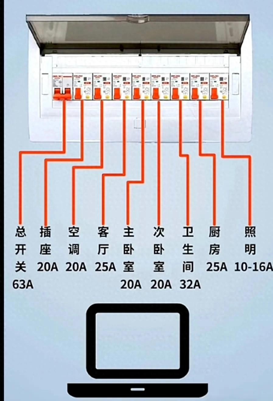 1、家庭配电箱的断路器选择(仅供参考,实际跟家里用电器功率匹配)