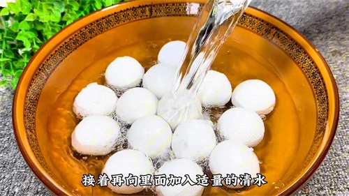 ·首先把准备好的汤圆倒入一个大点的碗中,接着再向里面加入适量的清水,将汤圆放在清水中浸泡半分钟。这样汤圆可以边解冻边吸收水分,而且还可以及时补充在解冻的过程中流失的水分。需要注意的是,浸泡的时间千万不要太长,不要超过60秒,不然就适得其反了。