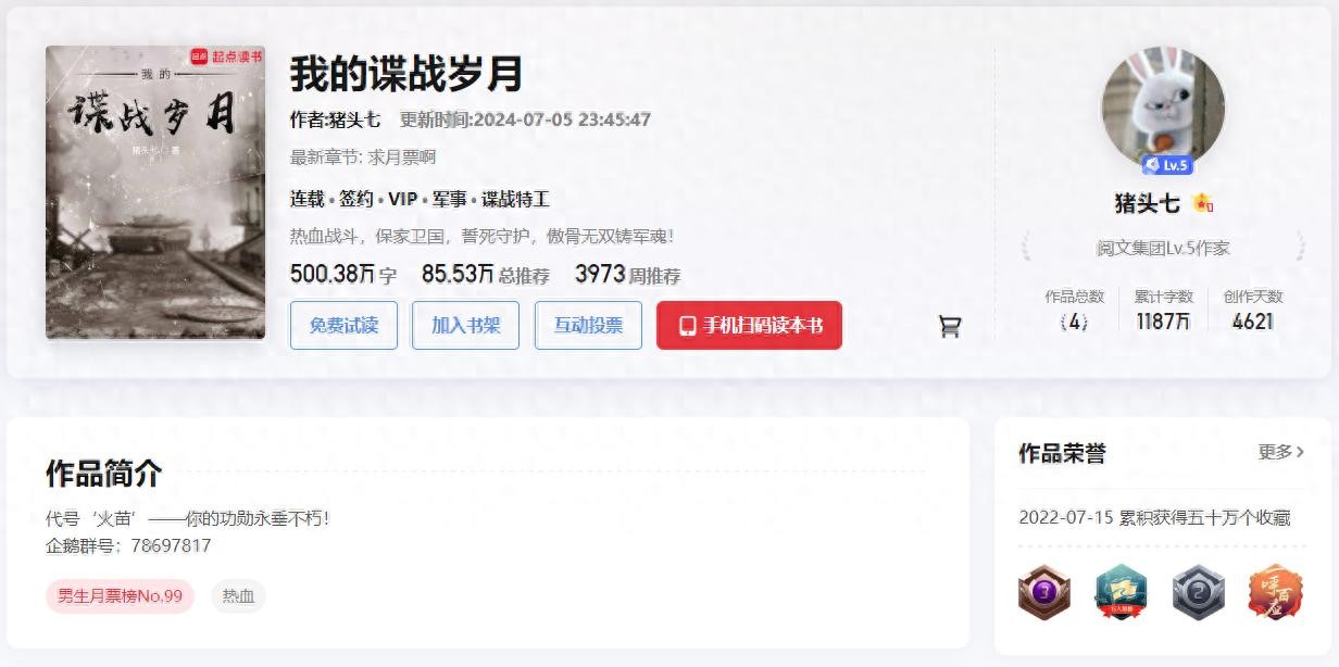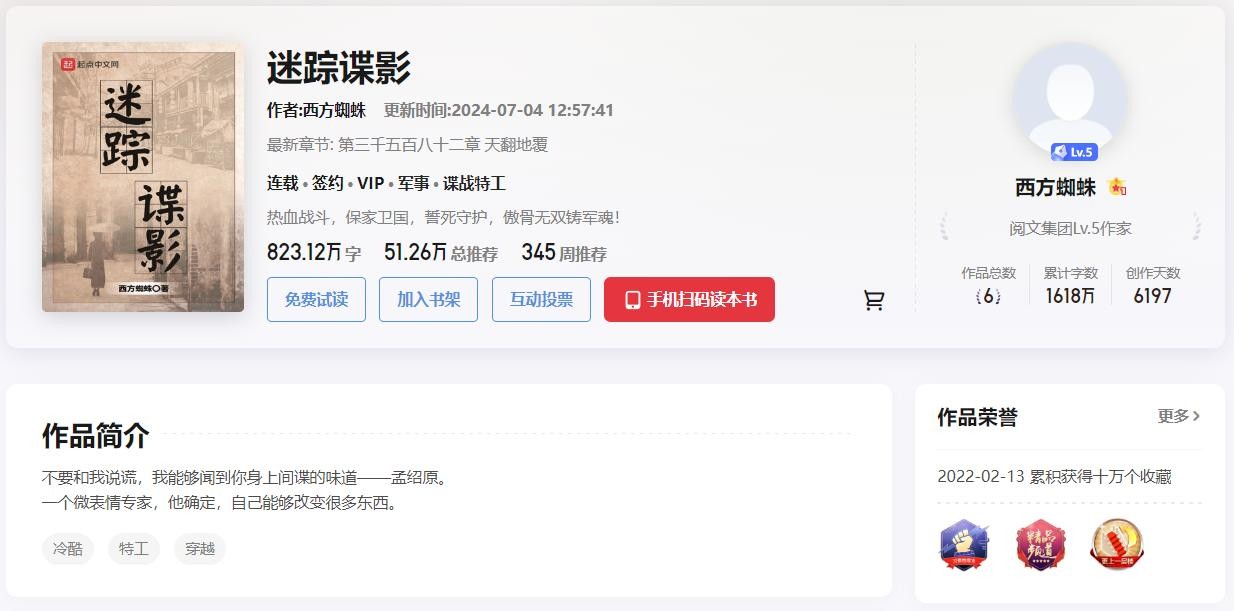 标签:特工,穿越,铁血,谍战