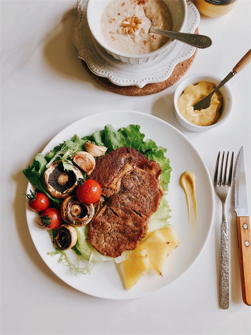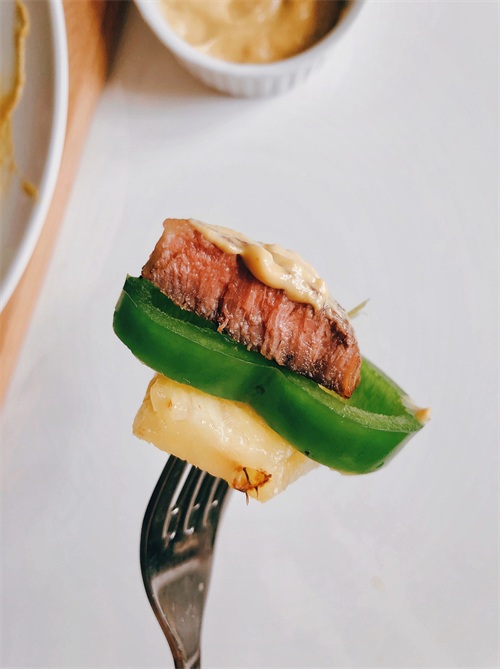 ①牛排+青椒+凤梨+黄芥末酱=天堂!