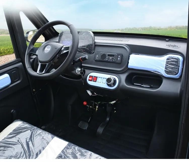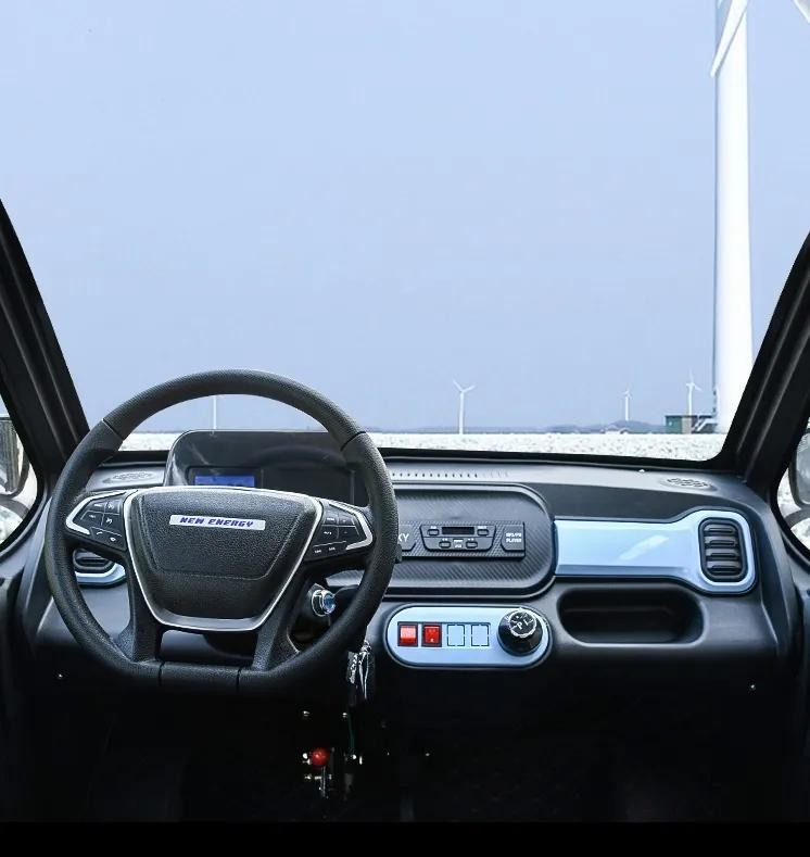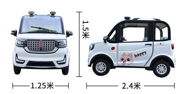 两门四座,车身大小符合标准,封闭式电动车身,搭配1000W电机,60V52AH天威或超能正牌电池,最大续航能力约120公里。车身长度2.4米,宽度1.25米,高度1.5米。