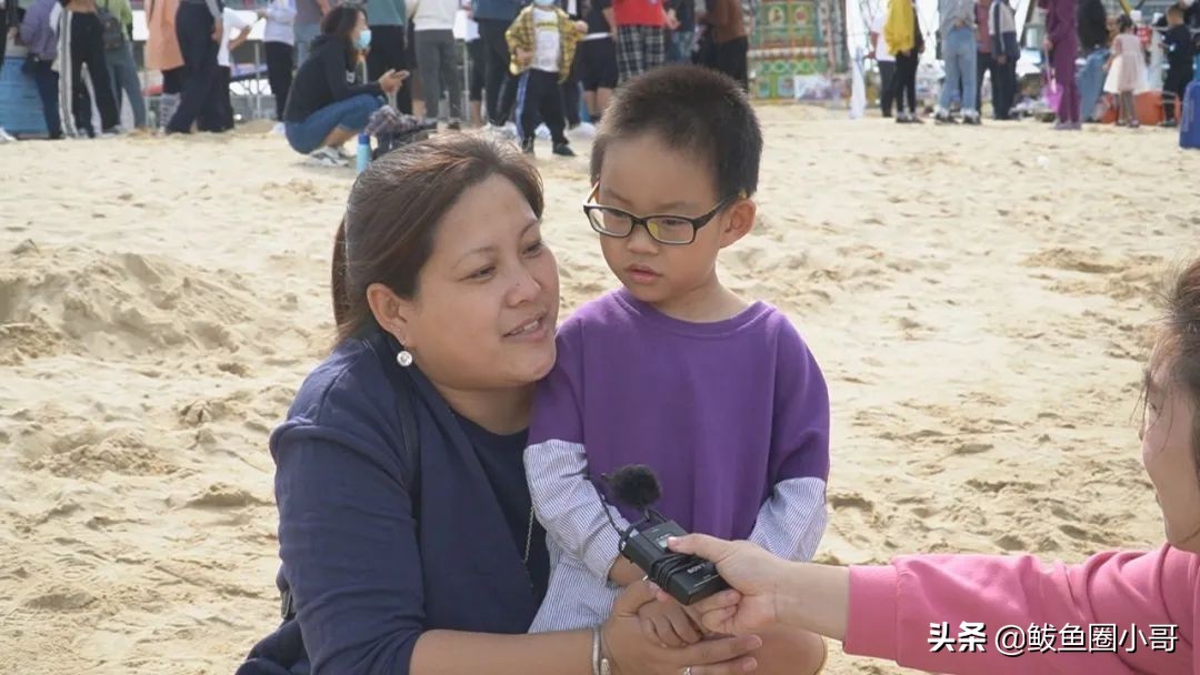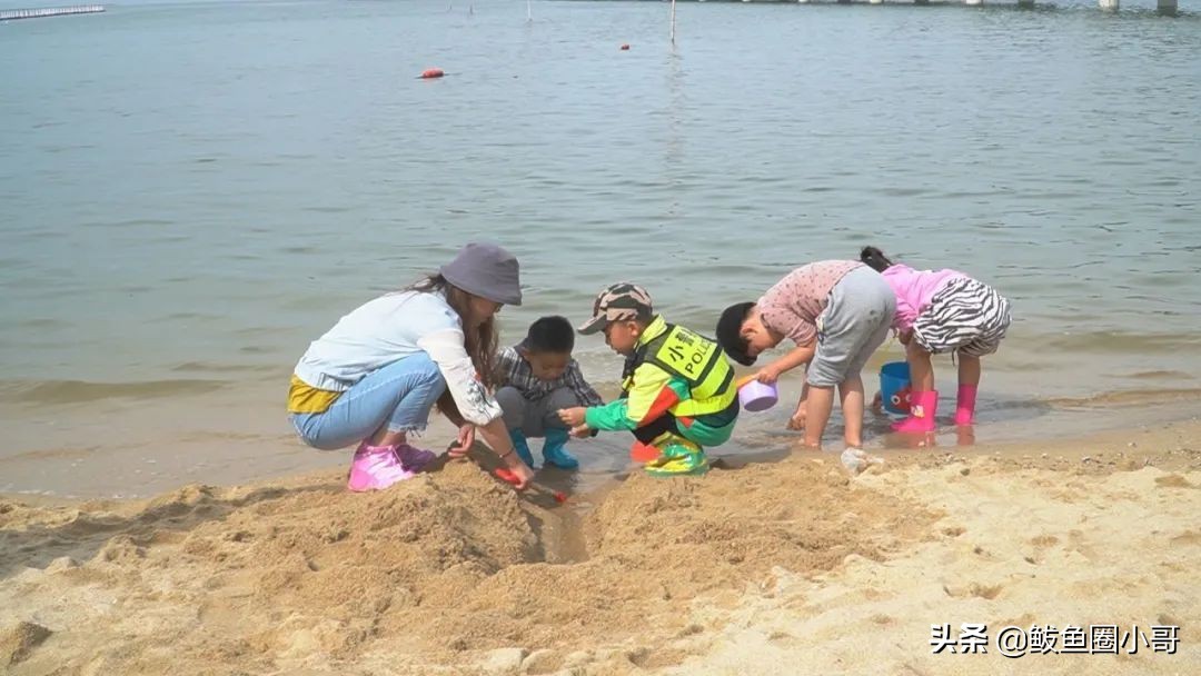 游客:沙子挺细的,海水也挺清的,带孩子玩得挺开心的。