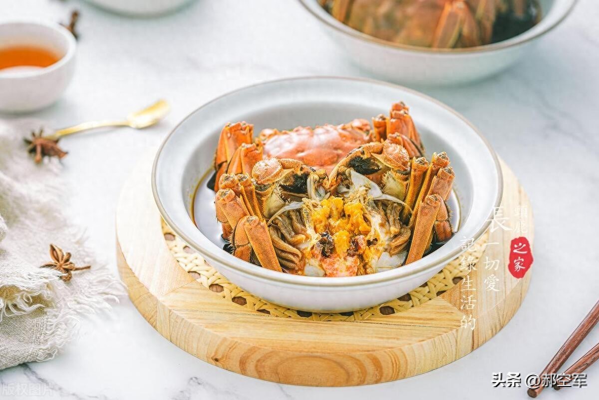 4. 腌制螃蟹:将腌制好的螃蟹放入醉汁中,腌制至少12小时,最好能腌制24小时以上,使螃蟹充分吸收醉汁的味道。