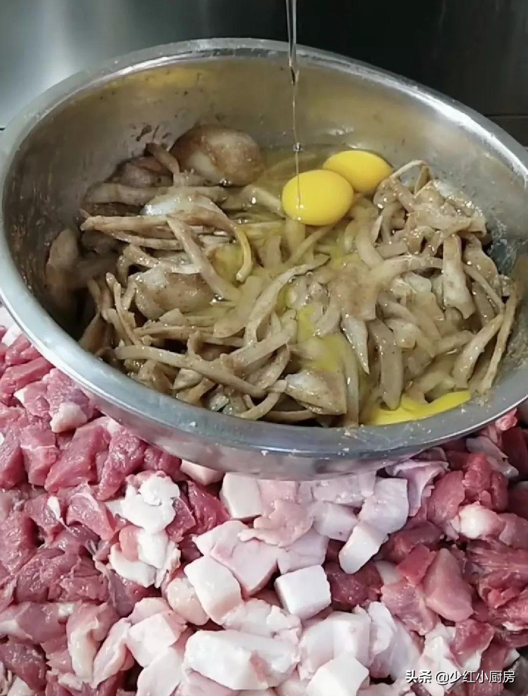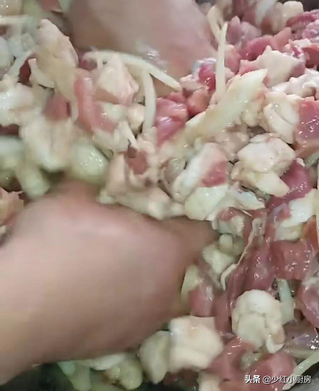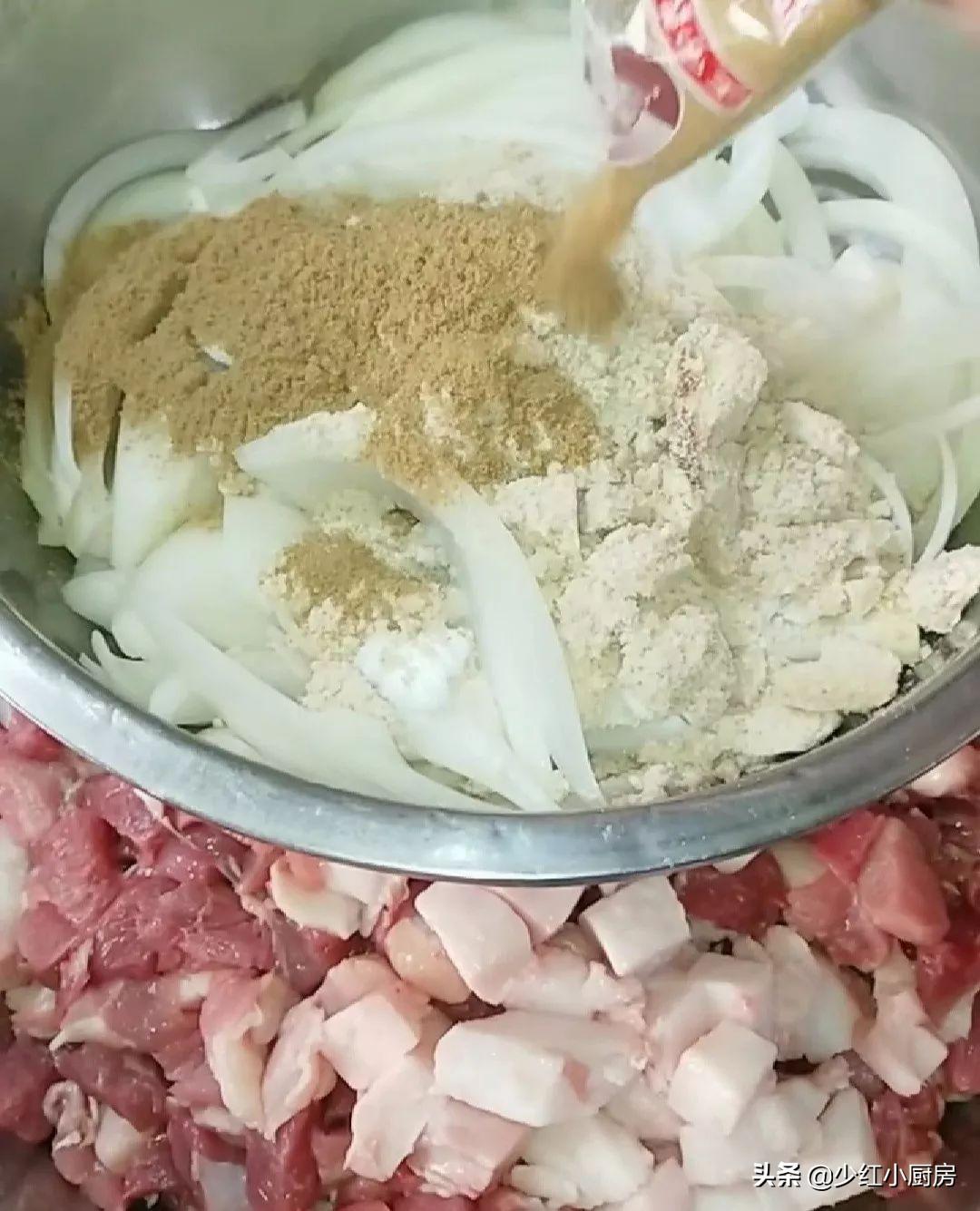 五斤肉放入盐40克,十三香30克,胡椒粉30克,鸡蛋两个,还可以根据自己口味调整