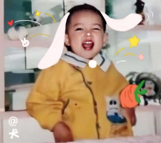 这一张的肖战大概是3岁左右,小时候肖战的牙齿就已经长得很好,咧开嘴笑得很甜。