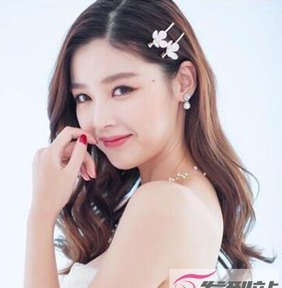 2-.露额卷发,额头不高的女生可以尝试露额卷发,头发烫卷显得洋气十足,戴上发饰甜美大方,很适合脸大的女生,格外修颜。
