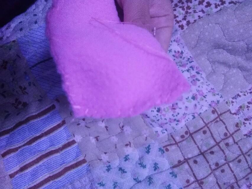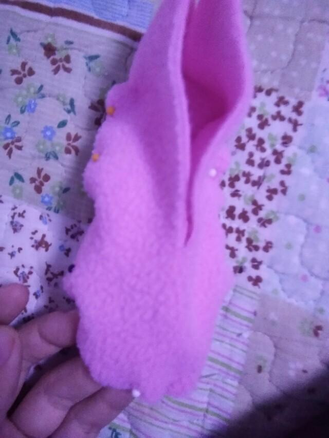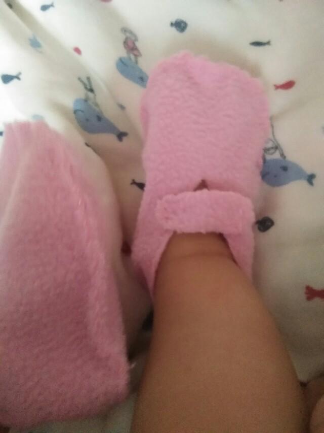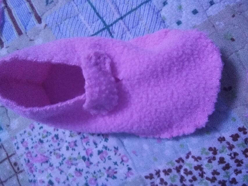 6、小鞋子做好了,是不是很简单呢。最近天这么冷,大家可以用加绒的布给宝宝做厚一点的鞋子。