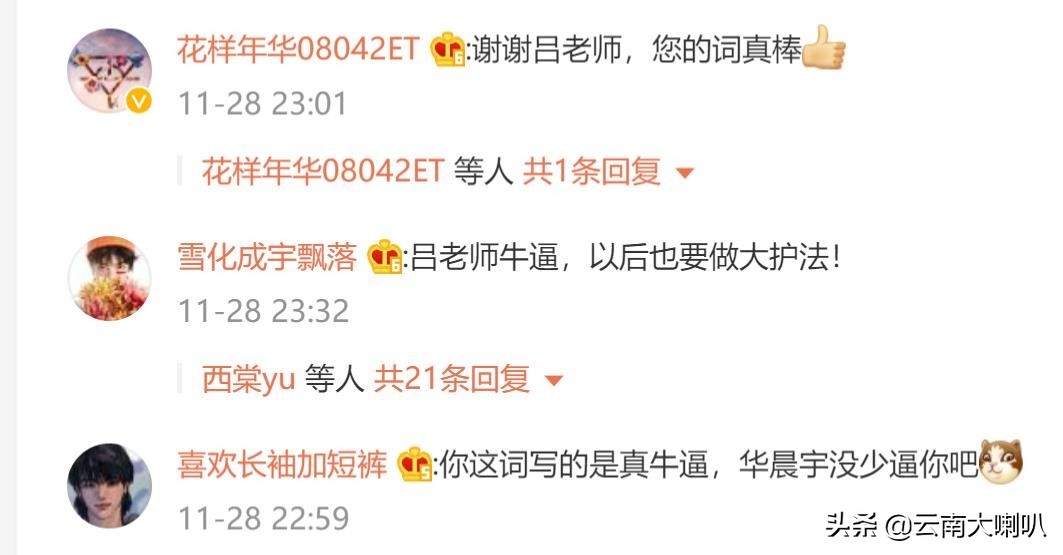 小喇叭观察到,花花的歌迷们在网上除了夸赞自己的爱豆外,还猛夸另外一个人,他就是作词人吕易秋。