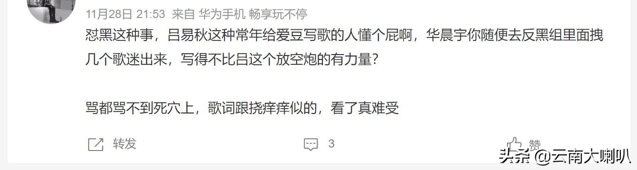 也许是爱屋及乌,也许是产生了共情,总之花花的歌迷们对作词人吕易秋的欣赏,可能会让“局外人”感到有些不可思议。所以在网上,部分网友还是发表了不同的看法。
