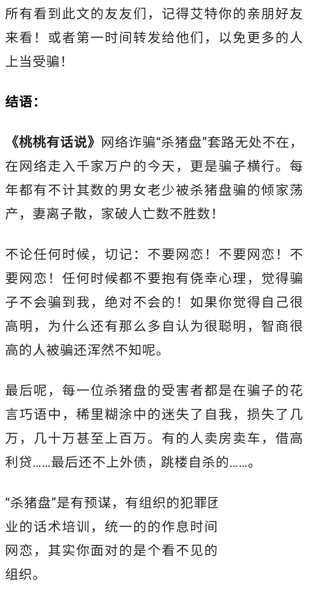 桃桃本桃在社交平台上分享了90张常用的“杀猪盘”照片,里面包含了各种不同的诈骗手法和技巧。
