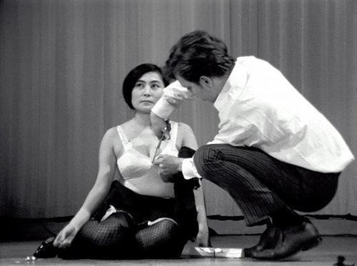请原谅笔者将这么一场十分严肃的行为艺术表演定义为“秀”,归其根本,还是因为在笔者的眼中,小野洋子的表现实在谈不上艺术,最多也就是“又当又立”,还过不了心理这一关。