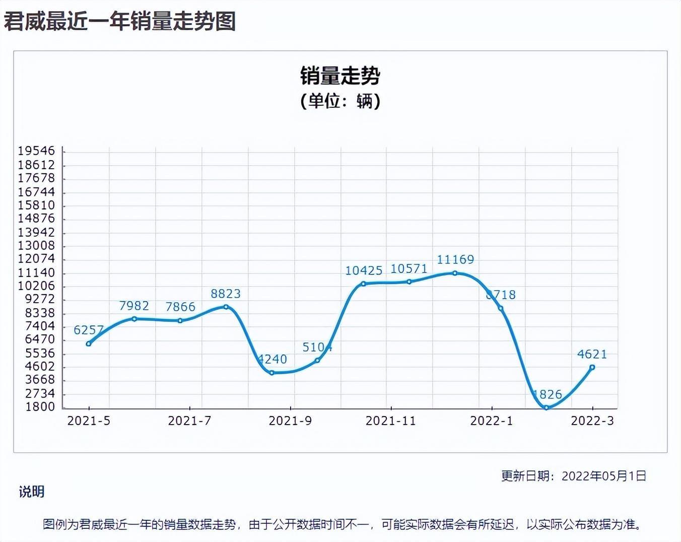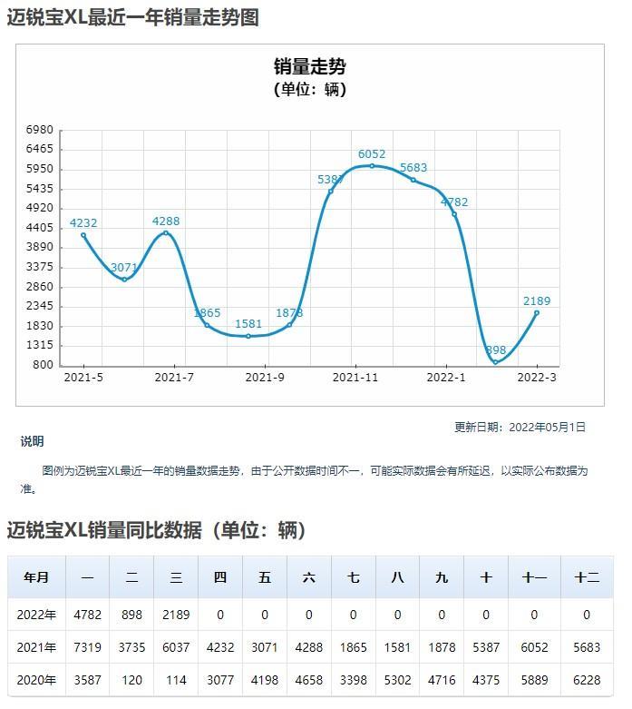 上面这个段子你应该看过,讲的就是雪佛兰高管关于迈锐宝xl的哭诉。就是这样一辆叫好不叫卖的车,销量却表现平平,甚至月销量连同级别竞争对手的零头都达不到。我们来看迈锐宝xl最近一年的销量走势图。