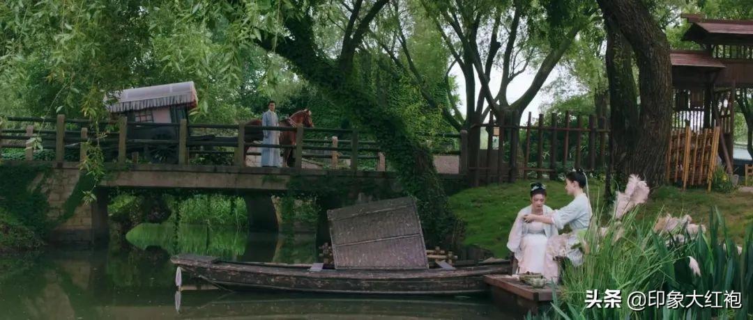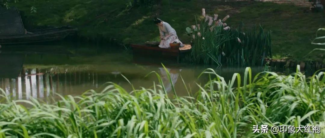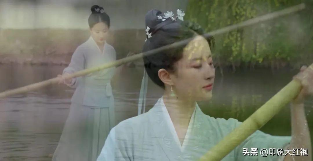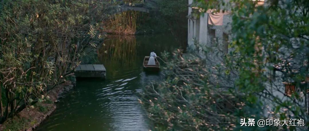 “她撑着竹竿,缓缓从水中驶来”,水上泛舟,轻摇橹棹,神仙姐姐的出场是让人屏住呼吸也不愿意错过的美,而比她更美的是她身后的江南风光:
