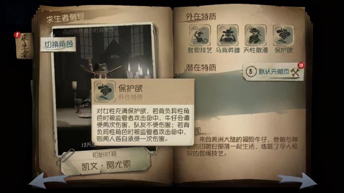 牛仔的保护欲技能是个重女轻男的技能,抱着女性求生者可以保护其不受伤害,抱着男性求生者会各获一次伤害,是个舍己救人的神技。