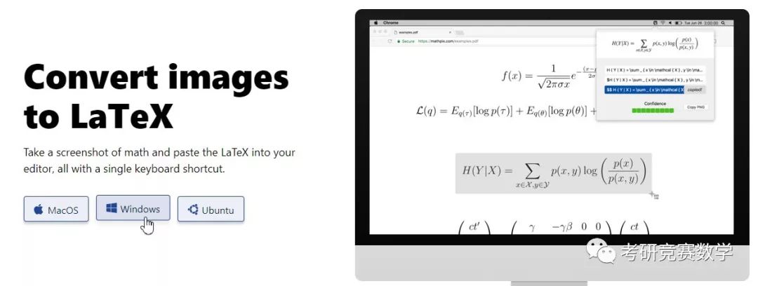 让你的这一切烦恼都能抛诸脑后了!它能将公式截图直接转换为Latex代码直接输出!当然也就能直接粘贴Latex代码到Mathtype转换为Mathtype公式嵌入文档了。而且,它不仅支持Windows操作系统,还支持MacOS、Ubuntu哦!图1是软件下载主页!