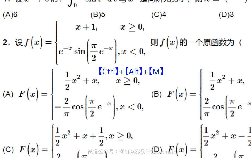 微信公众号:考研竞赛数学(ID: xwmath) 大学数学公共基础课程分享交流平台!