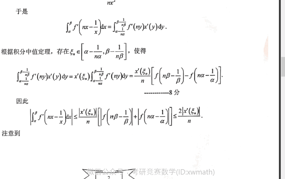 图3则是咱号在推送的时候供下载的一个PDF文档的截图,它是陕西省第八届高等数学竞赛试题及参考解析(点击直接查看)中的一个题目。