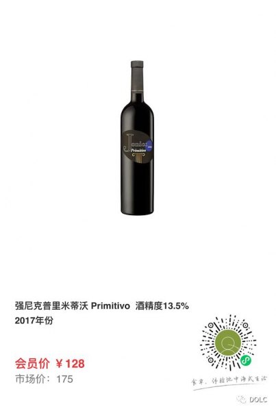 强尼克普里米蒂沃 Primitivo 酒精度13.5% 2017年份