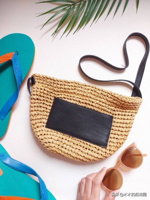 这款适合春夏的拉菲草包包,休闲味很足。半月造型,拉菲草的粗犷加皮质贴袋和肩带,有种自由不羁的风格,春日郊游的场景也非常适配。