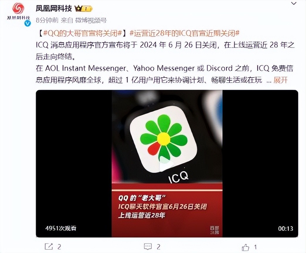 ICQ 聊天软件官宣 6 月 26 日关闭:上线运营近 28 年