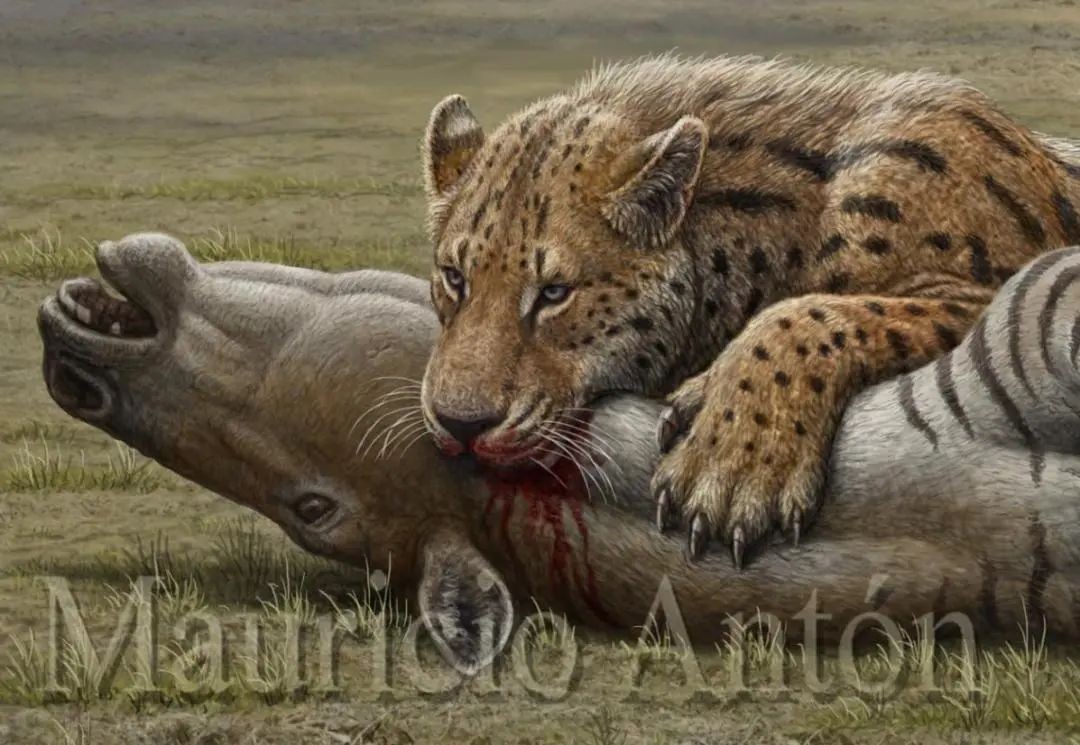 剑齿虎依靠这样高效的策略,成功分布于地球上除澳洲和南极洲的所有大陆,演化繁衍1600万年,成为演化最成功的大型猫科动物(我们熟悉的狮子老虎为代表的豹亚科,体型大型化也就200到300万年)。