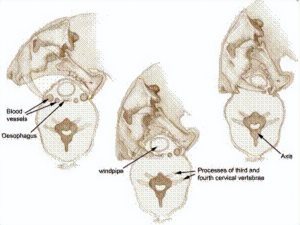 ▼ 上:现生猫科;下:剑齿虎序号5为颈部肌肉,可见剑齿虎颈部肌肉比现生猫科发达