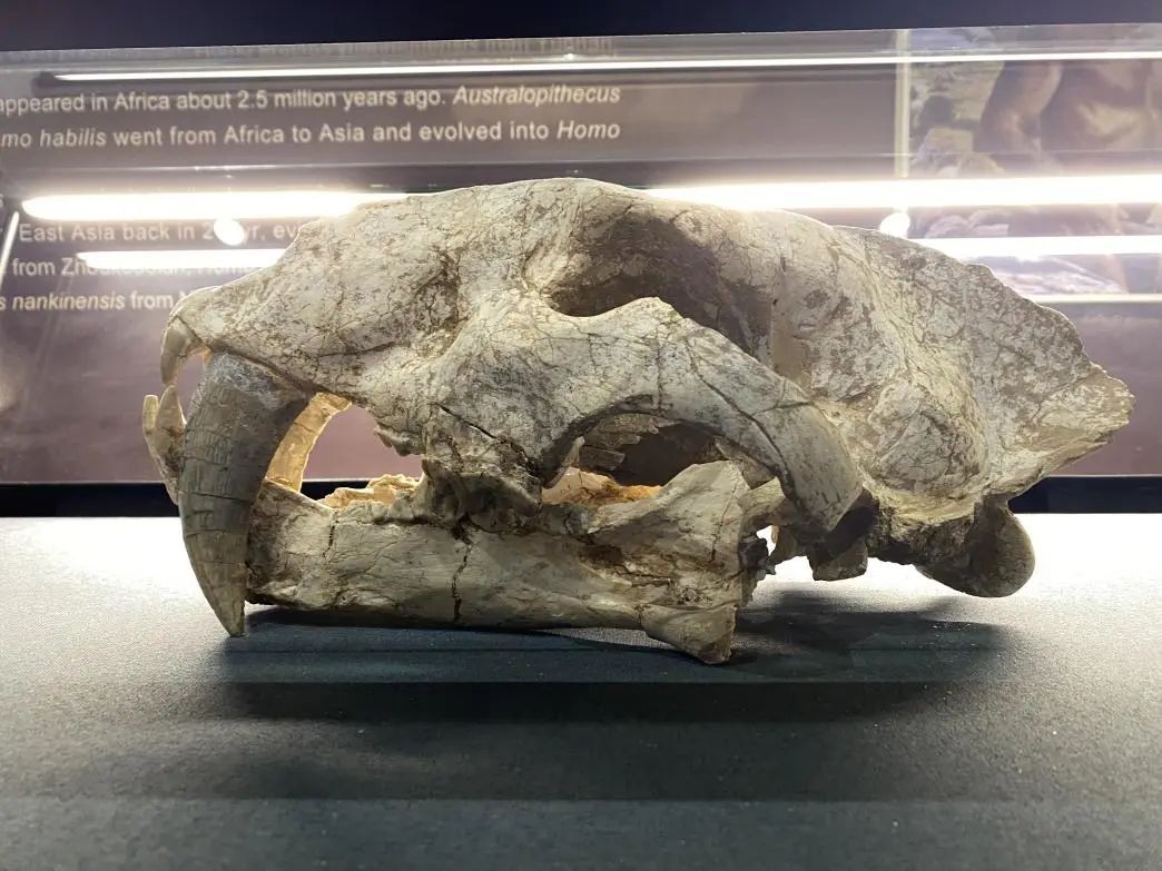 ▼ 保存于南京古生物博物馆内的巴氏剑齿虎头骨标本