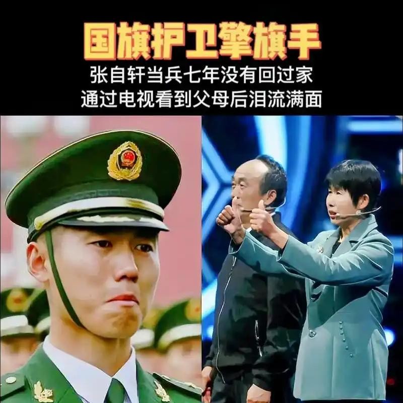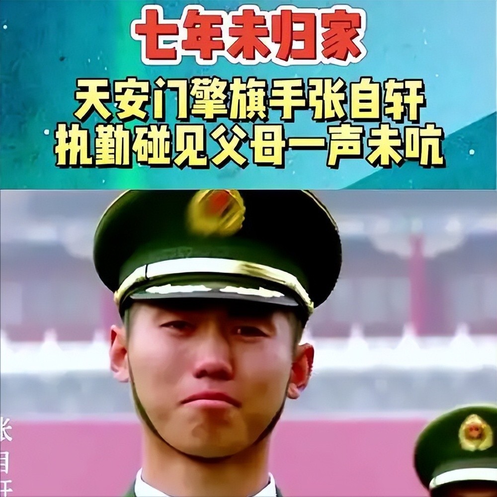 他们站在很远的地方,看着自己的儿子执行升国旗的任务。后来张自轩在接受采访时说到这件事,也是很难过。