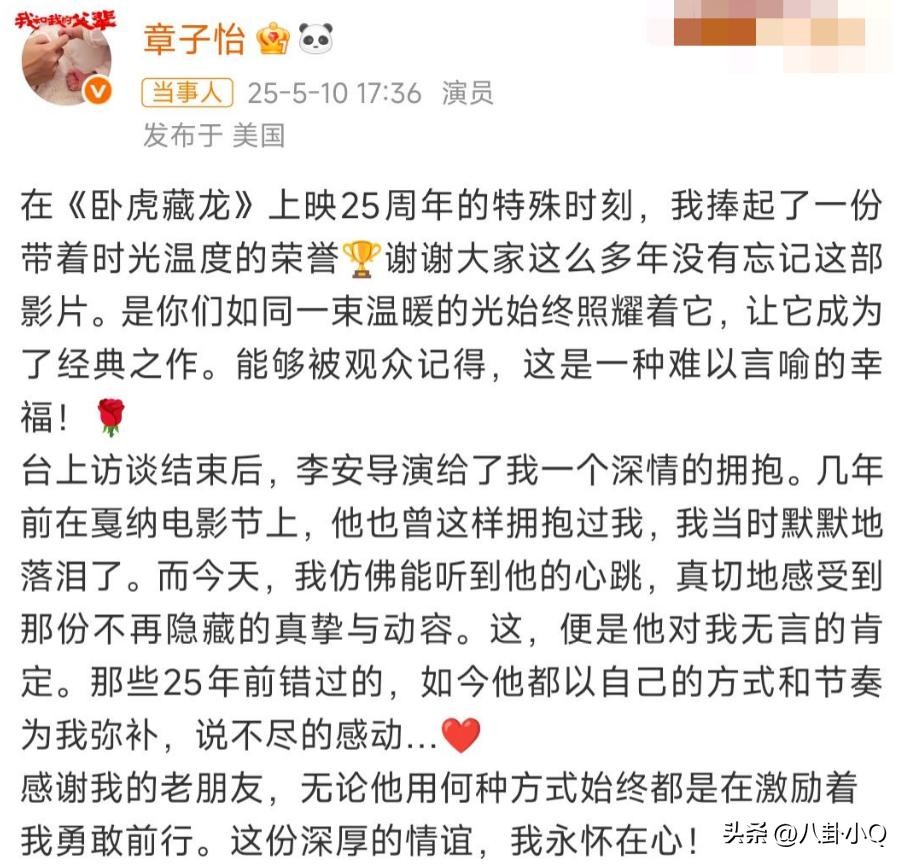 这也能够解释,为什么在这一次25周年的放映会上章子怡和李安拥抱后会如此的激动,