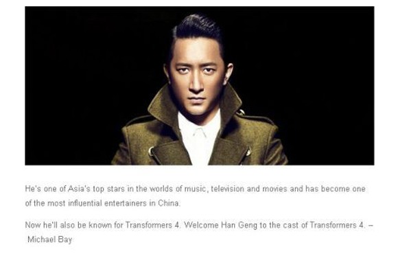 因为太火,韩庚还参演了全球大爆性电影《变形金刚四》,
