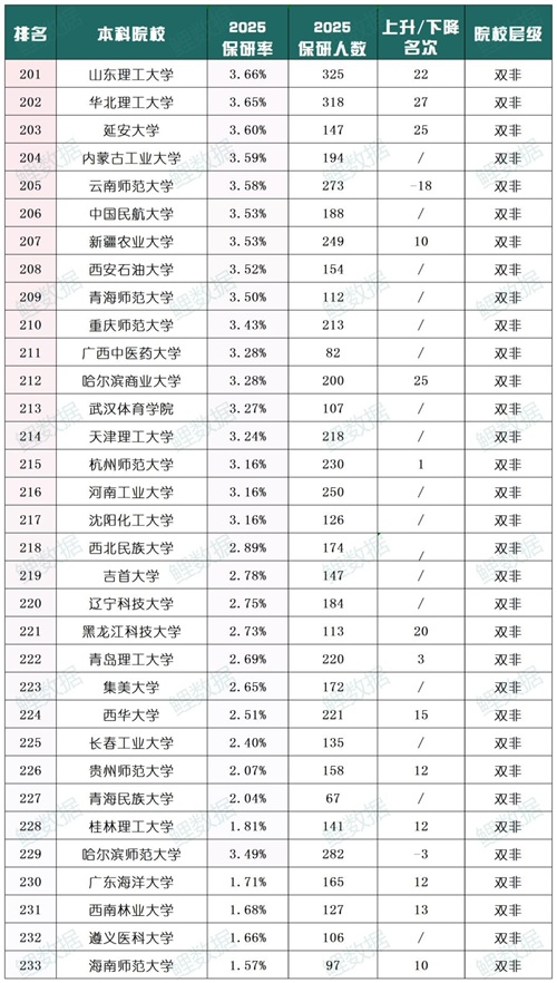 6. “双非”高校中南方医科大学、燕山大学的保研率也很高,不过首都医科大学的保研数据估计也很高,并没有在表格中;