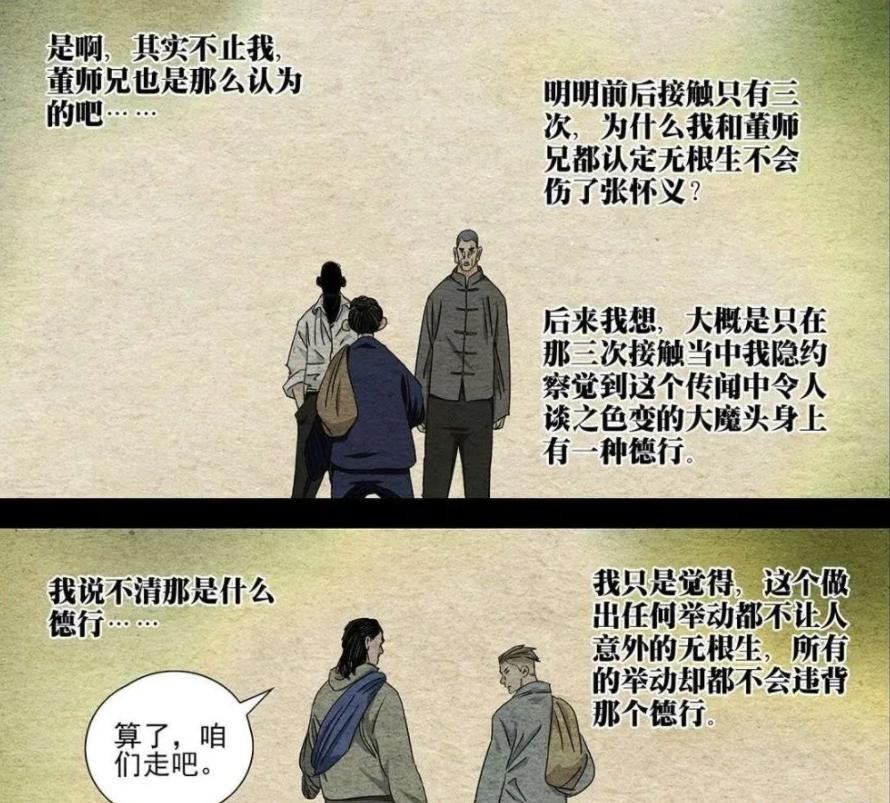 这里需要提到的一点是:长生是异人界所追求的重要能力之一,武侯门的终极阶段、三一门的“逆生三重”的第三重、徐三所说,天师度甚至有可能是长生的奥秘,都接近这一目标。无根生召集36贼悟奇技,这是个很好的理由。加之无根生有后以及画像等信息。