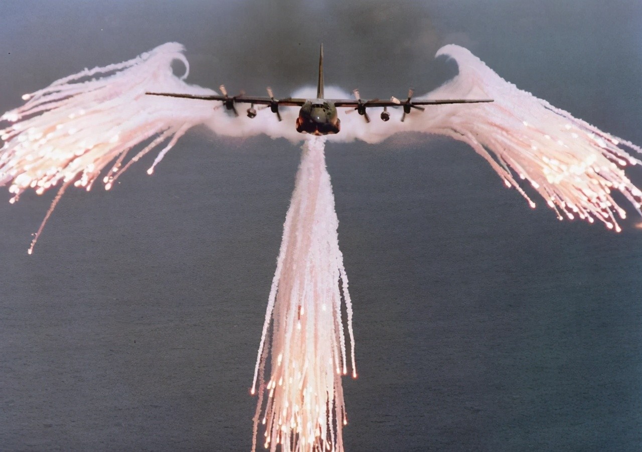 AC-130配备主动预警系统,装备的干扰弹可以对抗多批次的红外制导攻击,另外该机还配备了强大的电磁干扰系统,可以一定程度上干扰来袭导弹和敌方雷达。