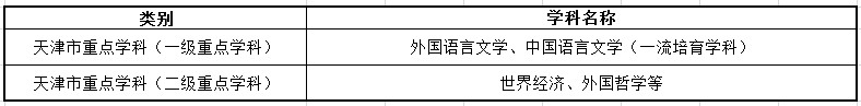 在学科建设方面,天津外国语大学拥有1个国家特殊需要博士人才培养项目,7个硕士学位授权一级学科点(涵盖29个硕士学位培养方向),7个硕士专业学位授权类别(涵盖21个培养方向);5个天津市重点学科、4个天津市特色学科群、1个天津市高校服务产业特色学科群,其中1个天津市一流建设学科、1个天津市一流培育学科。