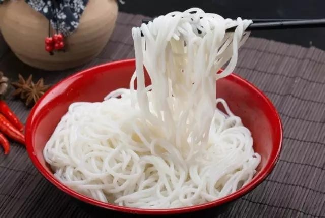 常德米粉选用的材料一般是早籼稻,因为早籼稻磨制作的比较细腻,杂质较少,口感自然也更好。在制作米粉之前,我们需要将早籼稻在水中浸泡8小时左右,然后再用磨头细细的磨成米浆,再准备一个竹筒,在竹筒的一头打出五个孔,随后就可以将米浆灌入竹筒中,你将就可以自然的从竹筒的小孔里流到盛满热水的锅里了,制作常德米粉最关键的一步也就完成了。如果大家嫌麻烦,也可以直接从超市里买现成的米粉,口感应该也不会差。