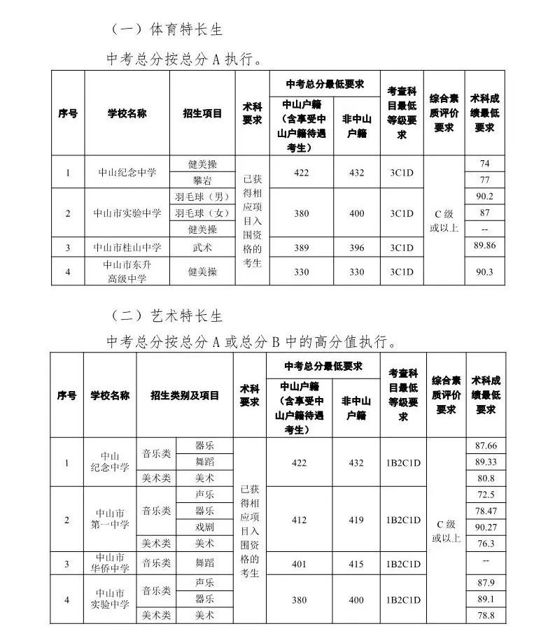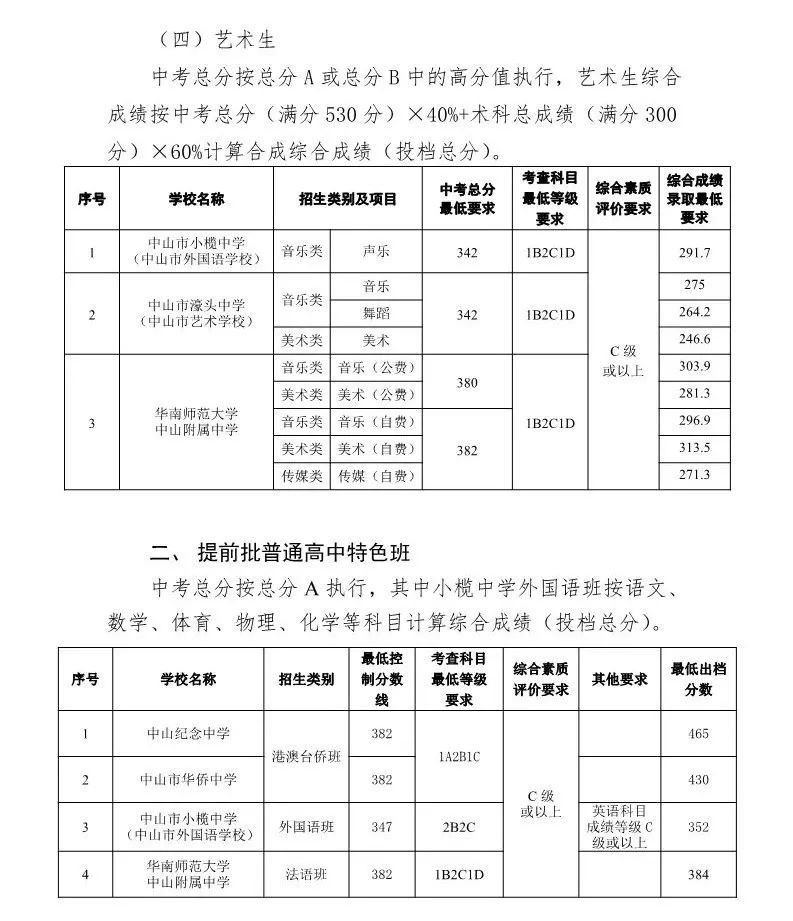 南都讯 记者侯玉晓就在刚刚,中山市2019年普通高中学校录取分数线公布。其中,第一批普通高中普通生,中山纪念中学B类最低录取分数线486分,A类中山户籍最低录取分数线473分,非中山户籍476分。中山市第一中学B类最低录取分数线477分,A类中山户籍最低录取分数线467分,非中山户籍476分。