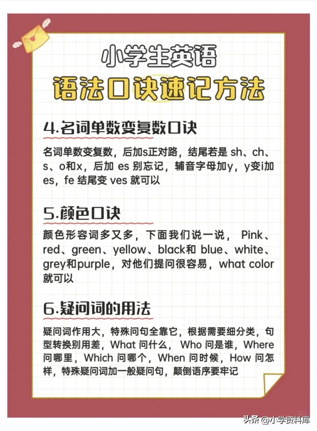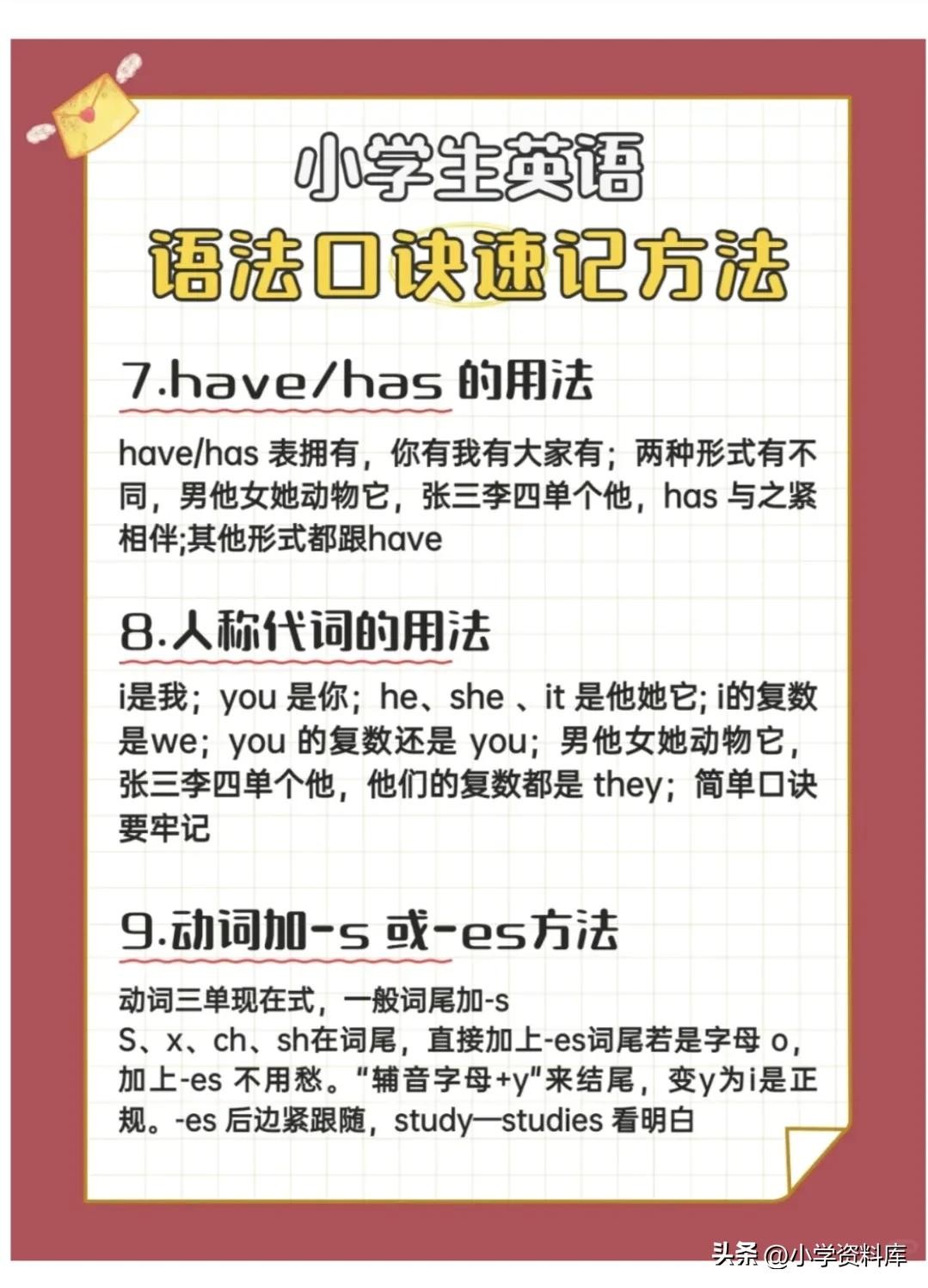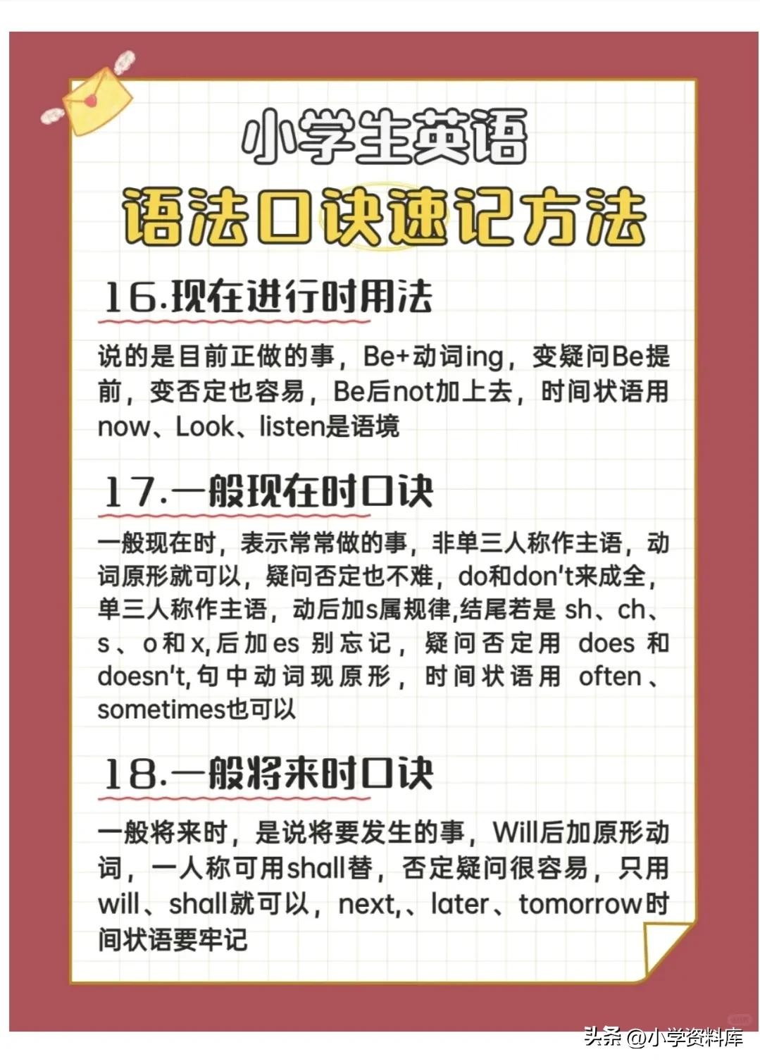 小学英语语法口诀速记方法,背熟了学习英语很轻松
