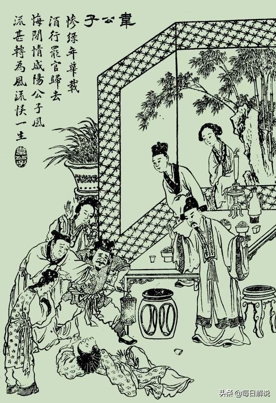 韦公子以风流自名,实则是放纵无耻,这等行径,比之《红楼梦》中的下流胚子贾政、贾琏、贾瑞等人尚且不如。人常说:“辱人妻女者,妻女必为人辱”,韦公子更甚,不止为人所辱,更为己所辱,不亚于人伦惨剧。如此人面兽行之辈,韦公尚不忍心他断子绝孙,着实可敬可叹。
